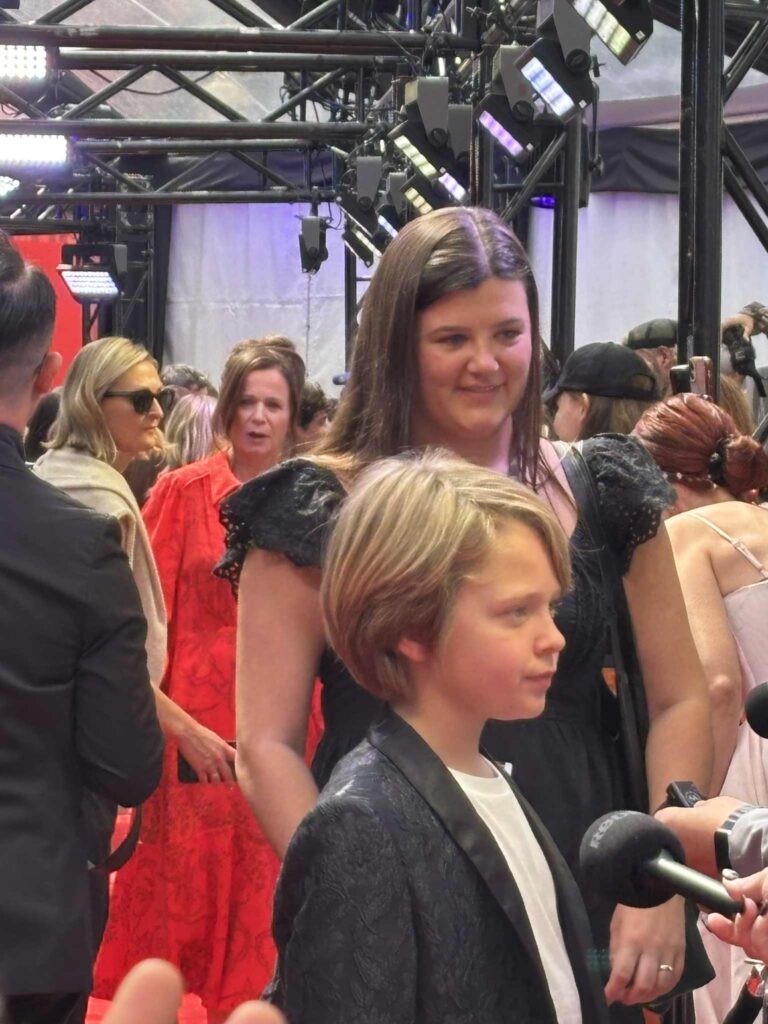 Le comédien Jacobi Jupe, 12 ans, sur le tapis rouge. En arrière-plan, l’actrice Emily Watson.